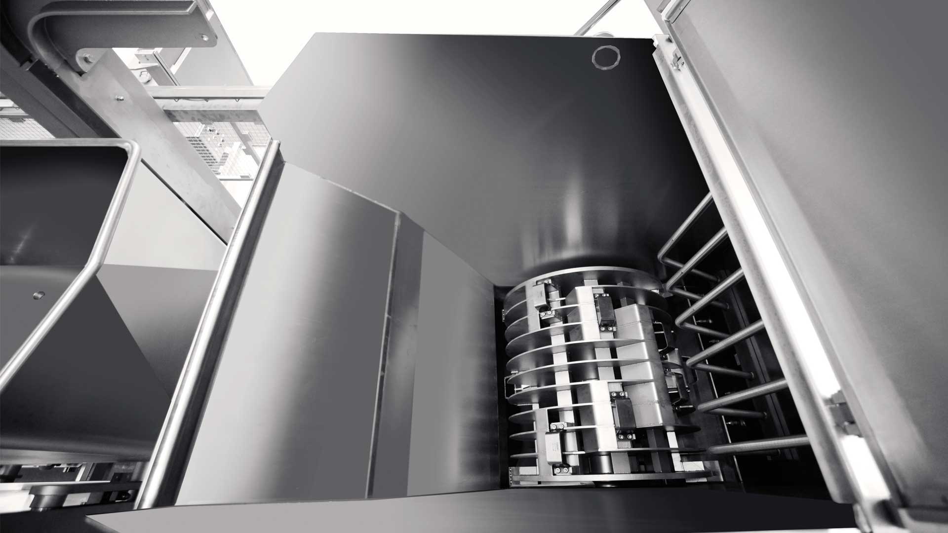 Ideal for the production of fruit juices: DRUMCUT. These machines are designed for the processing of frozen juice concentrates and pulps, and can handle all common barrel forms and sizes. The total system usually consists of the so called crusher DRUMCUT, of roller-conveyor systems for full and empty barrels, poly-liner squeezing technology, and adequate discharge methods like excentric pumps, screwconveyors or heat exchangers.