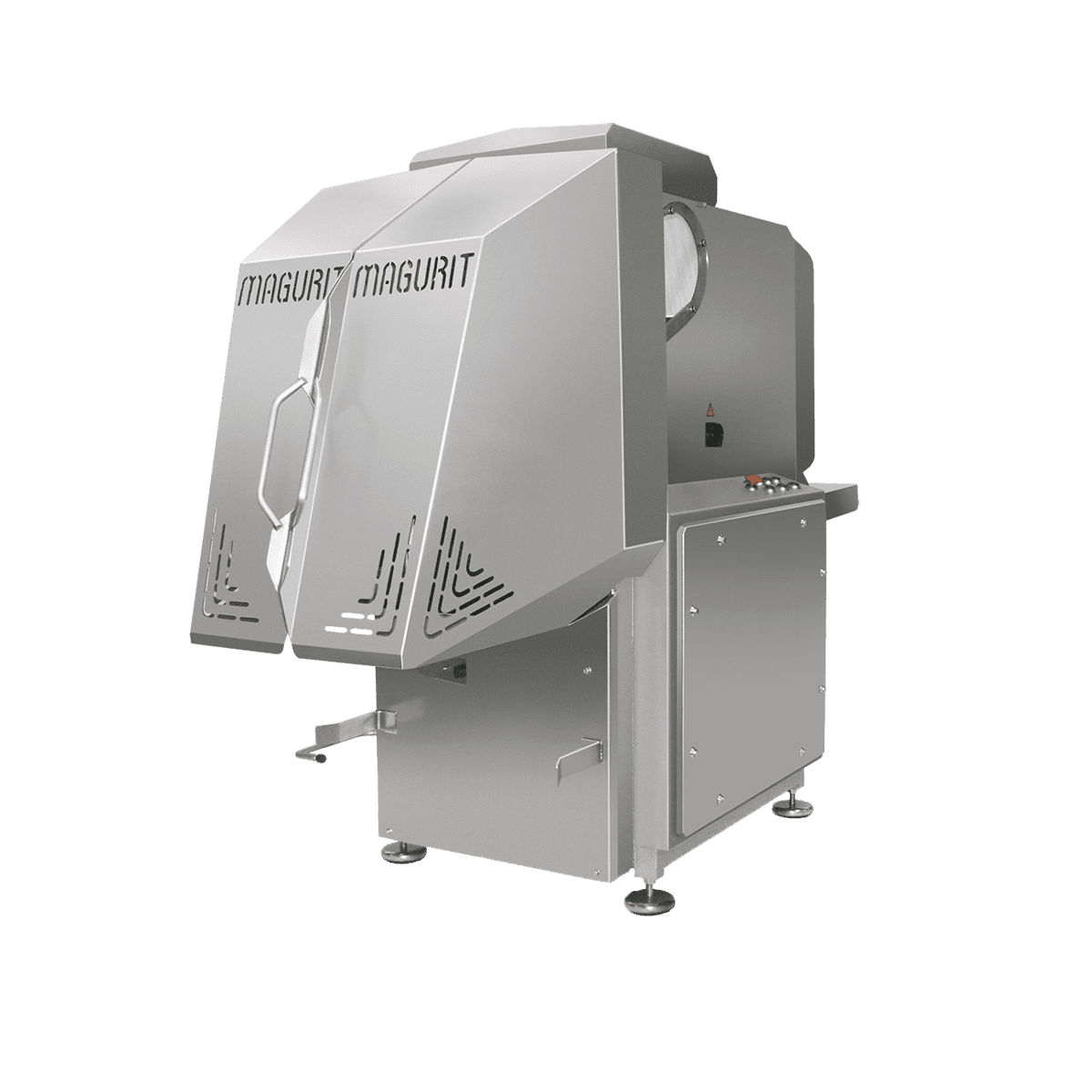 The FROMAT 053 has been designed specifically for pre-cutting of frozen meat blocks prior to further processing in either bowlcutters or mincers. The machine has the option to be fitted with a block lifting device that enables the frozen blocks to be lifted into position. It also incorporates a block hold down device which secures the block in place during the cutting process. Due to the continuous operation of the machine it is suitable for midsize and industrial companies ensuring consistent throughput at an affordable price.