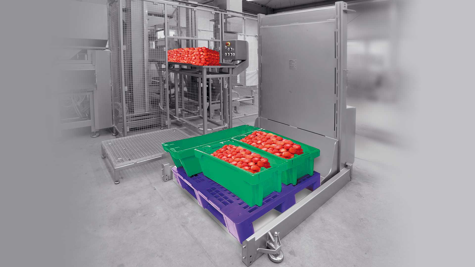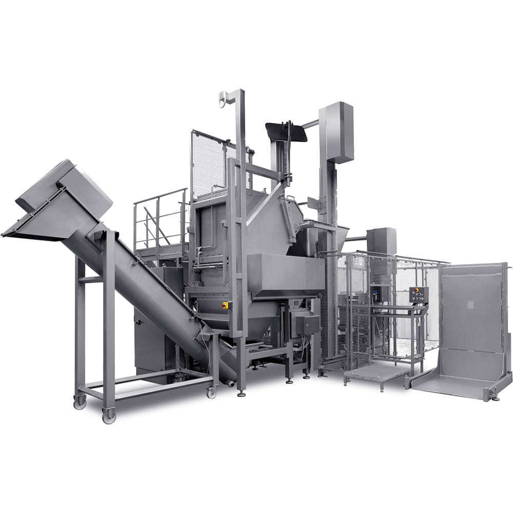- Opcional: Transportadores de rodillos, Dispositivos de elevación y volcado, Conexión a CIP, Bombas de descarga