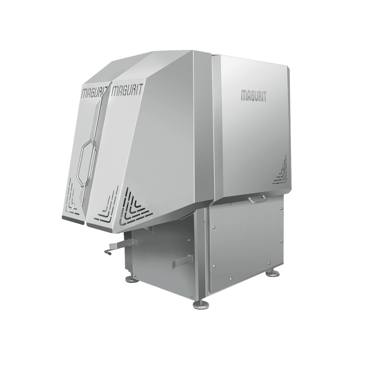 Der UNICUT 584 vereint die robuste Guillotinen-Schneidtechnik eines Gefrierschneiders mit kontinuierlicher Produktzufuhr über Förderbänder. Er wird für Anwendungen eingesetzt, bei denen es entweder auf hohe Leistungen bei präziser Schnittgröße ankommt, oder wenn Waren geschnitten werden sollen, die nicht oder schlecht auf Edelstahl rutschen. Auch sind die UNICUT 584 2D für das Schneiden von in Därmen gefrorener Ware gut einsetzbar. Dazu wird die Rohware durch ein Zufuhrförderband und Niederhalterband präzise gesteuert dem Schneidbereich zugeführt. Dies ermöglicht eine präzise Längen-Kalibrierung.